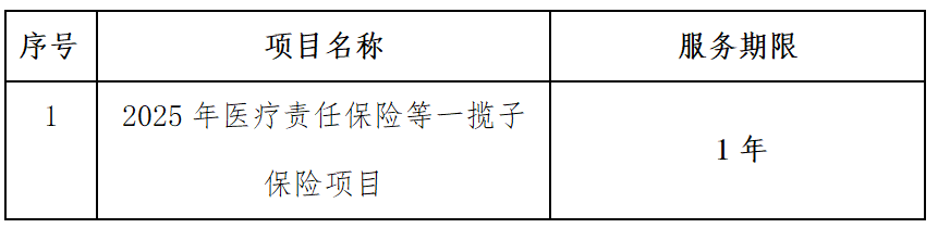 为落实《医疗纠纷预防与处理条例》《中华人民共和国医师法》有关医疗执业风险转嫁的规定,根据我院业务发展需要,我院拟购买2025年医疗责任保险等一揽子保险项目,现诚邀符合资质的供应商参加本次调研活动。一、项目内容: