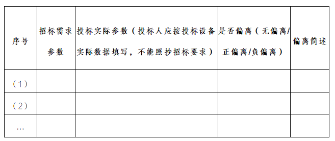 5.项目需求书条款响应情况:投标人必须对项目需求书的内容逐条响应。“★”号的条款为关键条款,必须实质性响应,负偏离(不满足要求)将导致投标无效(如有);带“▲”号条款为重点条款,不作为无效投标条款(如有)。