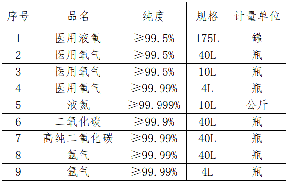 4.2标的数量:1项(含氧气、二氧化碳、氮气、氩气)