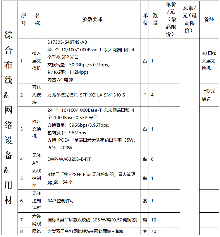 (二)本项目为货物采购安装,确定1家中标人,为采购人提供网络布线系统采购安装、调试。