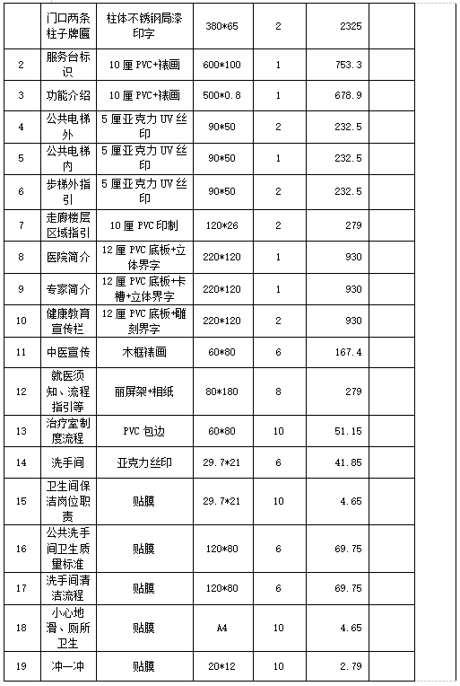 (1)提供专人上门对接服务,根据院方提供的资料,先到现场进行勘察、确定需求尺寸等,10天内完成所有内容的初步设计、修改方案及制作、施工及安装工作。