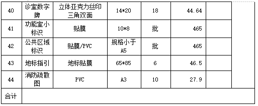 2.标识制作安装清单: