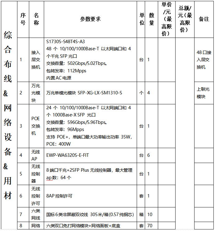 (二)本项目为货物采购安装,确定1家中标人,为采购人提供网络布线系统采购安装、调试。