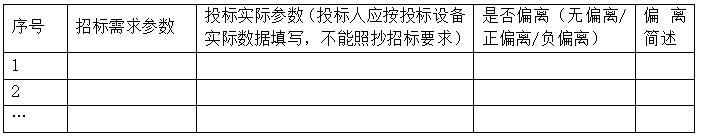 5.项目需求书条款响应情况:投标人必须对项目需求书的内容逐条响应。“★”号的条款为关键条款,必须实质性响应,负偏离(不满足要求)将导致投标无效(若有);带“▲”号条款为重点条款,不作为无效投标条款(若有)。
