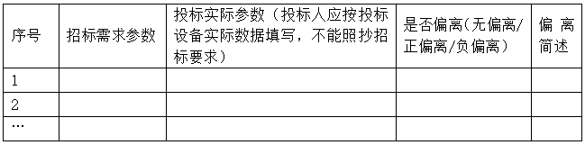 5.项目需求书条款响应情况:投标人必须对项目需求书的内容逐条响应。“★”号的条款为关键条款,必须实质性响应,负偏离(不满足要求)将导致投标无效(若有);带“▲”号条款为重点条款,不作为无效投标条款(若有)。