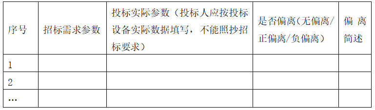 5.项目需求书条款响应情况:投标人必须对项目需求书的内容逐条响应。“★”号的条款为关键条款,必须实质性响应,负偏离(不满足要求)将导致投标无效(若有);带“▲”号条款为重点条款,不作为无效投标条款(若有)。