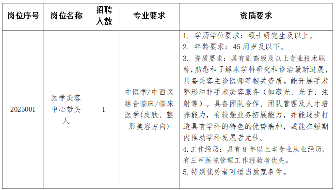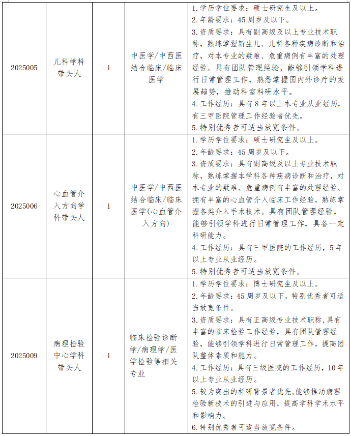 3.资质要求:具有正高级专业技术职称,具有丰富的临床检验工作经验,具有团队管理经验,能够引领学科进行日常管理工作,提高团队整体素质和能力。
